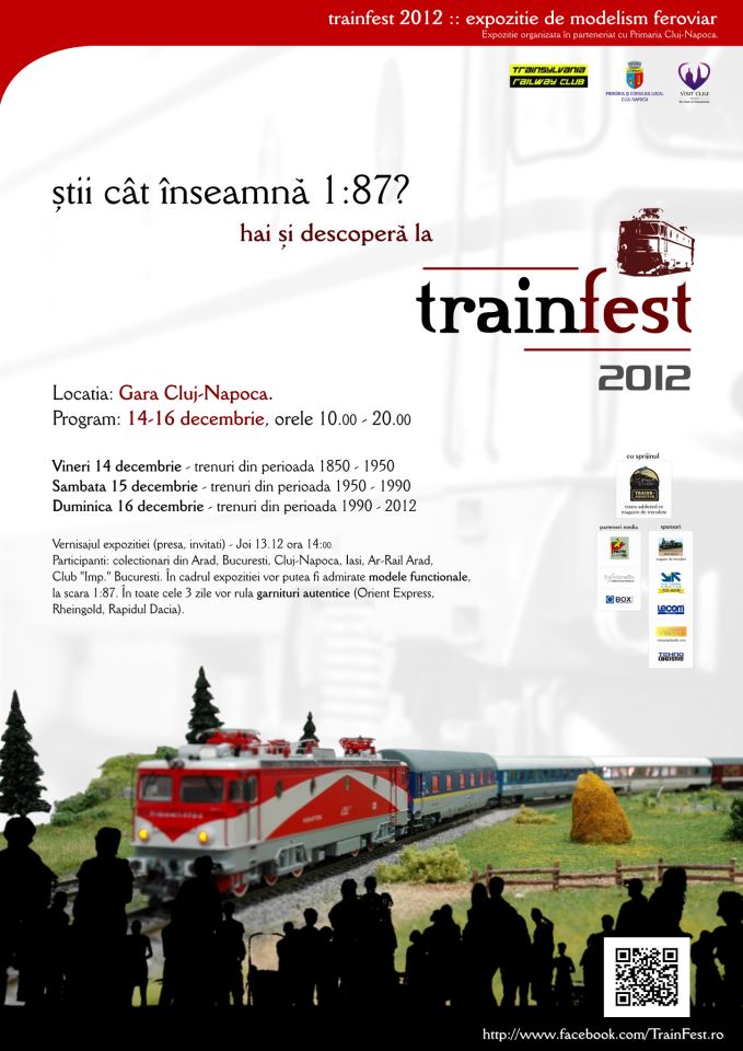 În perioada 14-16 decembrie 2012, Trainsylvania Railway Club organizează cea de-a IV-a ediție a Train Fest. Este vorba despre o expoziţie de modelism feroviar, trenuleţe în miniatură şi machete feroviare, care se va desfăşura în clădirea mare a Gării din Cluj-Napoca.