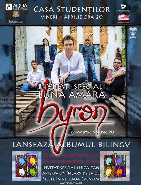 byronccsMâine, 5 aprilie, trupa Byron cucereşte Clujul. De la ora 17:00, fanii trupei şi nu numai, sunt aşteptaţi la un ceai cu trupa, la Librăria Cărtureşti. Aceştia îşi vor prezenta noul album, „30 Seconds of Fame/ 30 de secunde de faimă”, vor discuta deschis pe marginea lui şi vor cânta câteva piese live acustic.