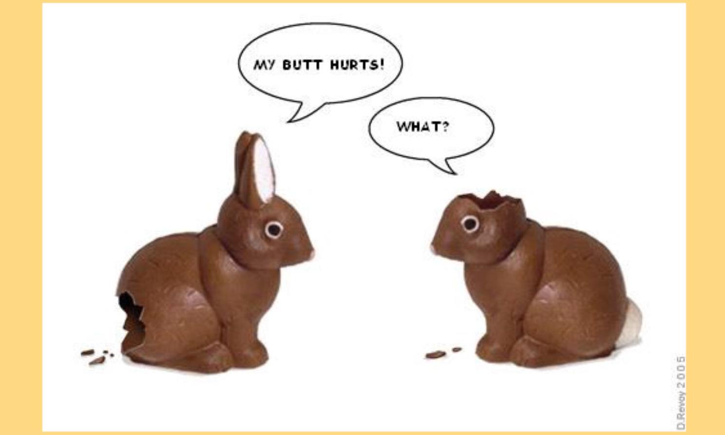 Acum că ştiu semnificaţia simbolurilor, abia aştept să ciocnesc un ou colorat de o pasăre-iepuroaică şi să sorb din sângele Domnului, în timp ce mă uit la animalul mort în numele mânturii noaste. Amin!
