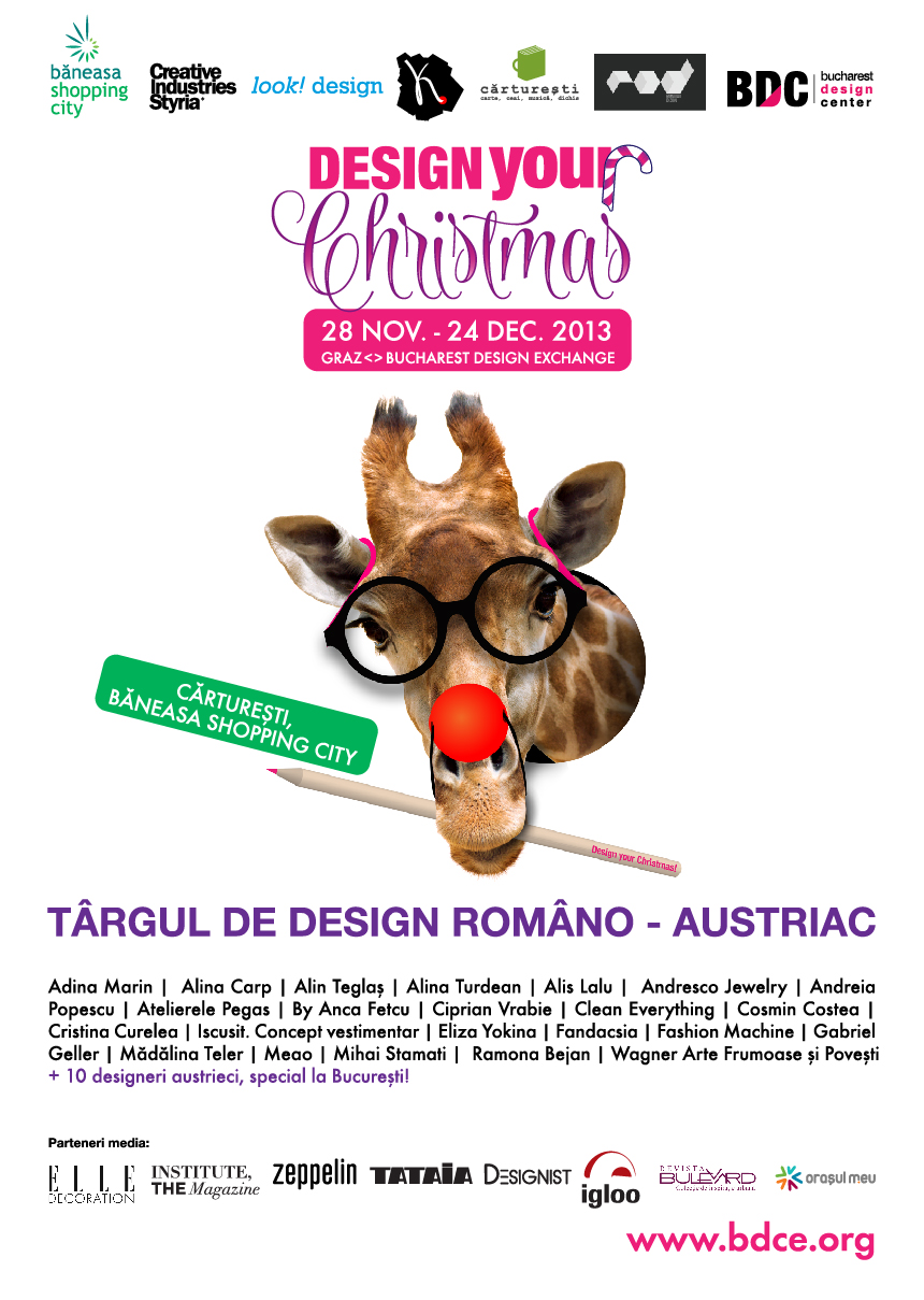 Între 28 noiembrie şi 24 decembrie va avea loc, la Bucureşti, în incinta librăriei Cărtureşti din Băneasa Shopping City, târgul Design Your Christmas. Acesta este primul târg de design româno-austriac, iar la eveniment vor fi prezente creaţiile a peste 30 de designeri români şi austrieci.