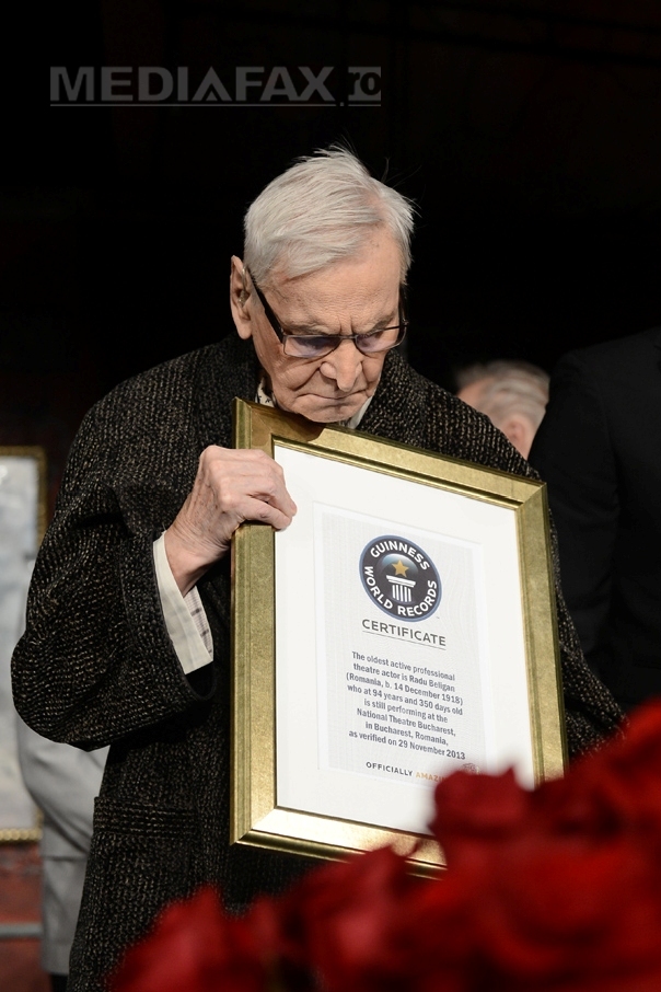 beligan-certificat-silviu-mateiDuminică seară, la Teatrul Naţional București, actorul Radu Beligan a primit certificatul Guinness World Records care atestă că este cel mai longeviv actor încă în activitate pe scena unui teatru.