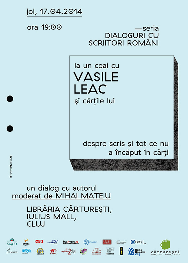 Astăzi, de la ora 19:00, librăria Cărtureşti găzduieşte întâlnirea scriitorului Vasile Leac cu cititorii săi.