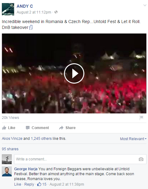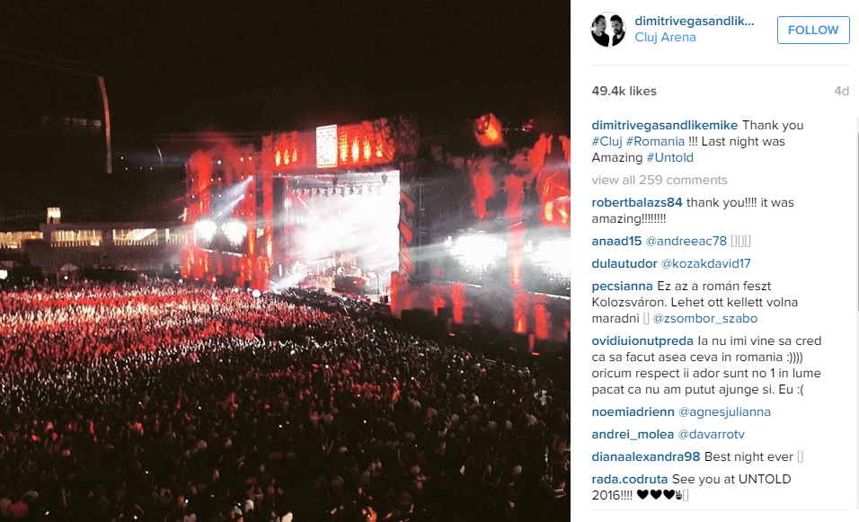 Ne bucurăm că după mai bine de șapte luni de muncă continuă, în care am visat și am sperat să creăm un eveniment memorabil, am reușit să oferim publicului o experiență unică în România. Peste 150 de artiști au avut parte de showuri de neuitat la Cluj-Napoca și toți vor să se reîntoarcă anii viitori în fața aceluiași public de neegalat. Eforturile noastre au fost răsplătite de entuziasmul și aplauzele unui public nespus de frumos, pe care sperăm să-l vedem și la ediția următoare.“ spune Bogdan Buta, Director General UNTOLD Festival.