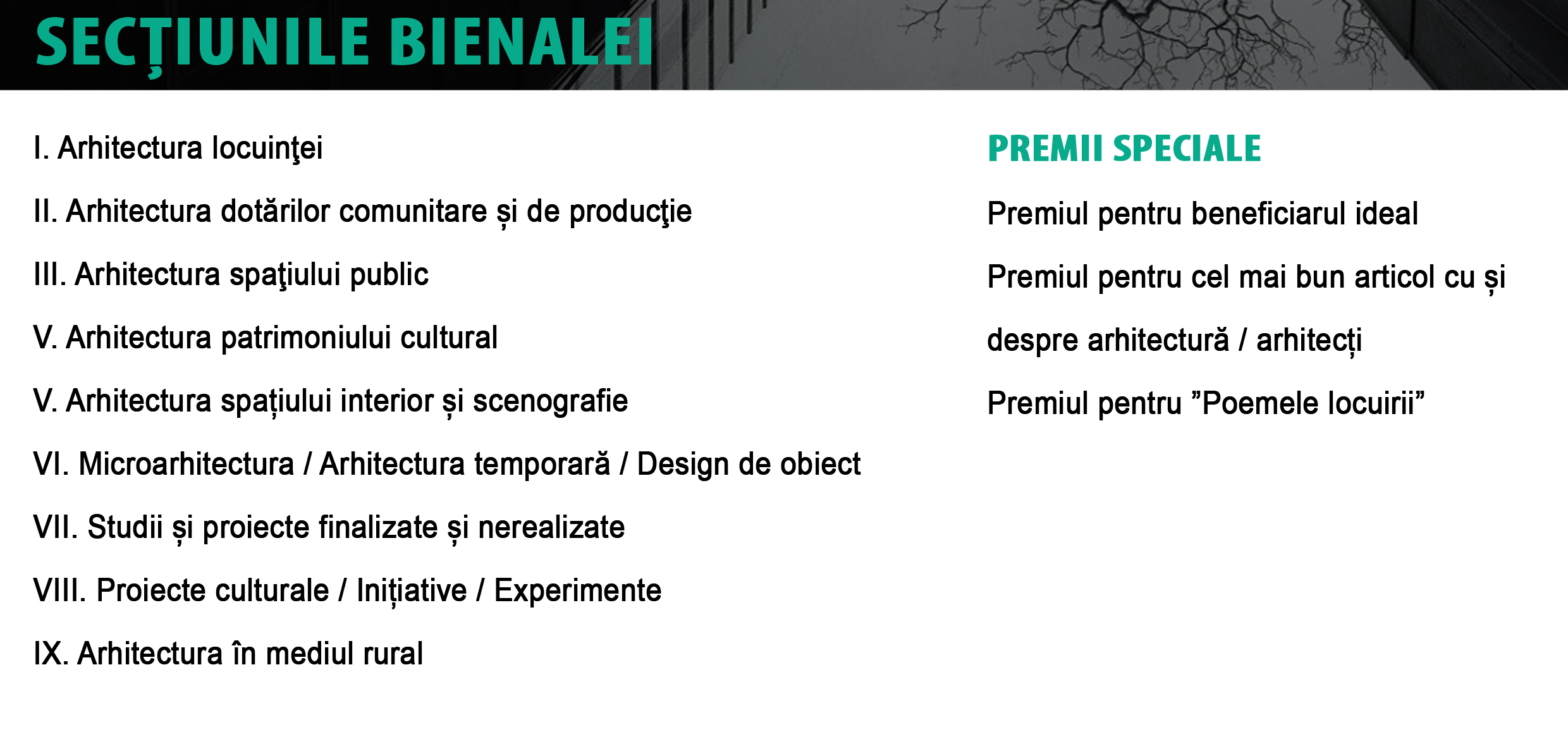 De asemenea, vor fi acordate câteva premii speciale: premiul pentru beneficiarul ideal, premiul pentru cel mai bun articol cu/despre arhitectură/arhitecți și premiul pentru cea mai bună poezie pe tema arhitecturii din cadrul concursului ”Poemele locuirii”.