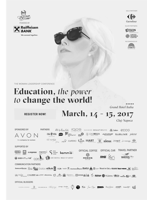Femeile din România, dar şi din străinătate, se întâlnesc săptămâna viitoare la Cluj-Napoca, între 14 și 15 martie, pentru a-şi expune poveştile de viaţă şi a dezbate ce înseamnă să ai succes în carieră. De la sportive care au adus cinste României precum Gabriela Szabó sau Ana-Maria Brânză, până la femei de afaceri precum Măriuca Talpeș sau Camelia Şucu, femei incluse în topul celor mai influente femei de afaceri din România. Fiecare speaker va susţine prezentări discuţiile fiind axate în jurul tematicii principale fiind „Educaţia, puterea de a schimba lumea”.